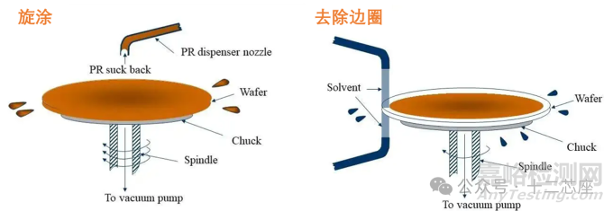 選好光刻膠后,就得用旋涂機(jī)(Coater)涂抹光刻膠。通過(guò) Coater 的高速旋轉(zhuǎn),滴落到晶圓的光刻膠可均勻伸展到整個(gè)晶圓表面。