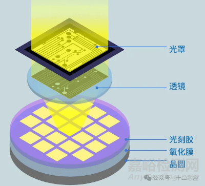 涂好光刻膠后,使用光刻機(jī)將光源通過(guò)掩模版照射到晶圓上。掩模版是一種透明的版,分為光可通過(guò)的透明區(qū)和遮光的不透明區(qū)。光源通過(guò)掩模版將圖案投射到光刻膠上,從而將掩模圖形轉(zhuǎn)印到晶圓上。