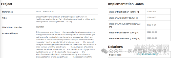 歐盟要求2025-04-30遵守2024版本的ISO 18562系列。