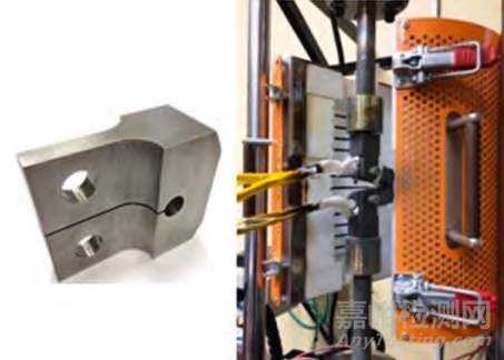 Madariaga等通過電火花切割方式從全尺寸渦輪盤本體中提取試樣,在配有感應(yīng)加熱系統(tǒng)的MTS試驗(yàn)機(jī)上完成了高溫低周疲勞試驗(yàn)(如圖13所示)。