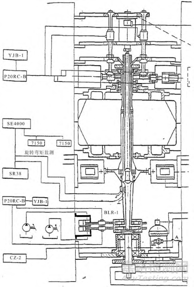 成都發(fā)動機(jī)公司研制的主軸立式綜合加載試驗(yàn)器(如圖15所示)是我國航空發(fā)動機(jī)軸試驗(yàn)中應(yīng)用最為廣泛的試驗(yàn)器,該試驗(yàn)器可對發(fā)動機(jī)主軸同時(shí)施加軸向力、扭矩、彎矩、振動扭矩等載荷,較好地實(shí)現(xiàn)了雙轉(zhuǎn)子發(fā)動機(jī)渦輪軸的載荷模擬和邊界條件模擬(如雙轉(zhuǎn)子發(fā)動機(jī)渦輪軸多支承的全模擬、渦輪軸與渦輪盤聯(lián)結(jié)處的全模擬),可用于確定渦輪和渦槳發(fā)動機(jī)主軸壽命,也可對同類主軸進(jìn)行強(qiáng)度極限、屈服強(qiáng)度和剛度的驗(yàn)證試驗(yàn)。