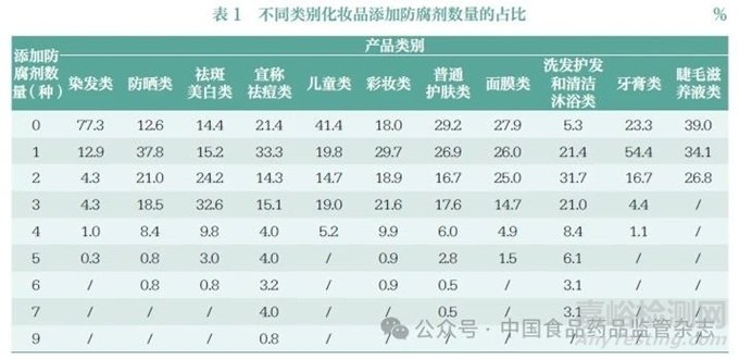 2.1 化妝品中防腐劑的使用數(shù)量