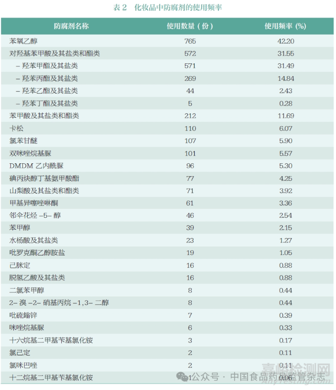 2.2 化妝品中防腐劑的使用頻率