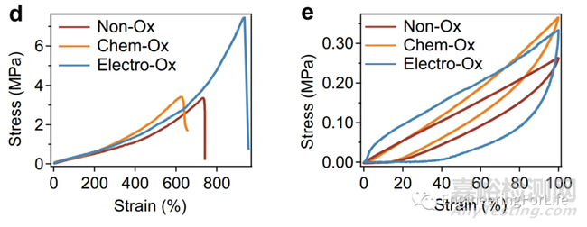 圖7 Non-Ox、Chem-Ox和Electro-Ox水凝膠膠帶的典型拉伸卸載曲線