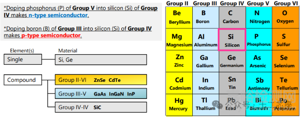 然而,純半導(dǎo)體中的自由電子數(shù)量非常少,電導(dǎo)率很低。因此,半導(dǎo)體通常會(huì)摻雜雜質(zhì)原子,這些雜質(zhì)原子的價(jià)電子數(shù)量比宿主原子多或少。這會(huì)在半導(dǎo)體中產(chǎn)生自由電子的過剩或不足,從而提高其電導(dǎo)率。