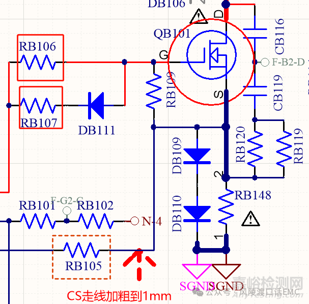 2.2、原邊MOS管D極與變壓器勵(lì)磁電感之間串聯(lián)磁珠: