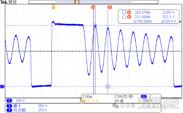 無抖頻功能MOS管D極電壓波形 抖頻功能MOS管D極電壓波形