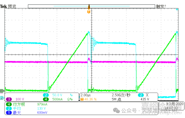 勵(lì)磁電感與MOS管D-S極寄生電容振蕩波形