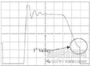 原邊MOS管在Toff期間,D-S極間寄生電容與變壓器勵(lì)磁電感會(huì)形成寄生的LC振蕩,振蕩頻率由勵(lì)磁電感感量與D-S極間寄生電容參數(shù)共同決定。由于此寄生振蕩環(huán)路包含在原邊MOS管的開通電流環(huán)路中,屬于功率環(huán)路無法通過串聯(lián)電阻的方式破壞LC振蕩,只可通過電源濾波器濾除。