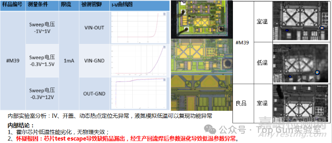 2)內(nèi)部實(shí)驗(yàn)室分析:原廠分析的結(jié)果與整機(jī)故障表現(xiàn)不符,且內(nèi)部實(shí)驗(yàn)室進(jìn)行IV測(cè)試和開(kāi)蓋均未見(jiàn)明顯的異常;同時(shí),對(duì)單體進(jìn)行bench測(cè)試,確認(rèn)在低溫時(shí)霍爾芯片參數(shù)會(huì)劣化;對(duì)霍爾芯片進(jìn)行動(dòng)態(tài)熱點(diǎn)定位,未發(fā)現(xiàn)明顯異常的熱點(diǎn)。