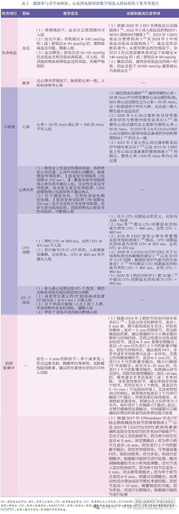 有關健康參與者生命體征及心電圖篩選入組標準的考量要點,見表1[4-20]。