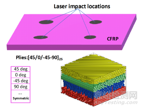 圖3 本文實(shí)驗(yàn)所用復(fù)合材料檢測(cè)位置與鋪層信息