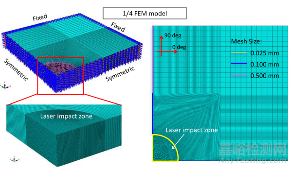圖4 激光誘導(dǎo)沖擊復(fù)合材料的四分之一模型