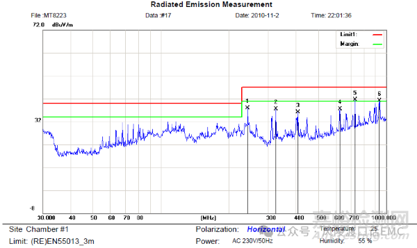 圖1:輻射發(fā)射測試數(shù)據(jù)