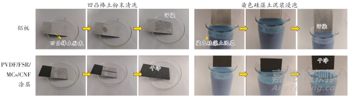 圖6 鋁基底和PVDF/FSR/MCs/CNF涂層的自清潔性測試結(jié)果