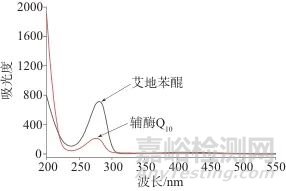圖1 艾地苯醌和輔酶Q10紫外吸收光譜圖