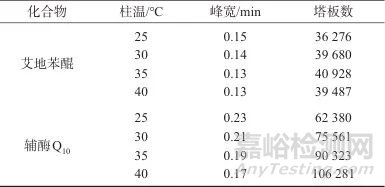 表2 不同柱溫下2種化合物色譜分離參數(shù)