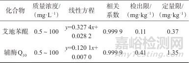 Tab. 3 Linear ranges of mass concentration,linear equations,correlation coefficients,detection limits, and quantity limits