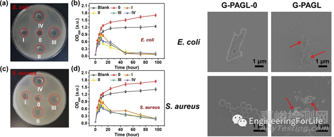 圖2 雙網(wǎng)絡(luò)G-PAGL水凝膠的抗菌性能表征