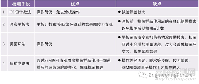表1 四種抗菌檢測(cè)手段的優(yōu)缺點(diǎn)對(duì)比