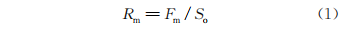 式中:Rm為所測(cè)涂層的結(jié)合強(qiáng)度,MPa;Fm為最大載荷,N;So為所測(cè)試樣的斷裂面面積,mm2。