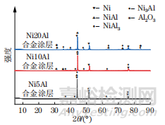 圖 3 不同鎳鋁合金涂層的 XRD 譜
