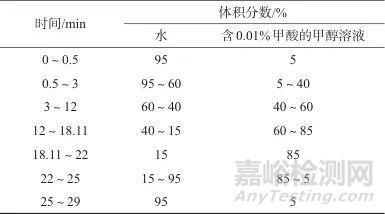 表1 梯度洗脫程序