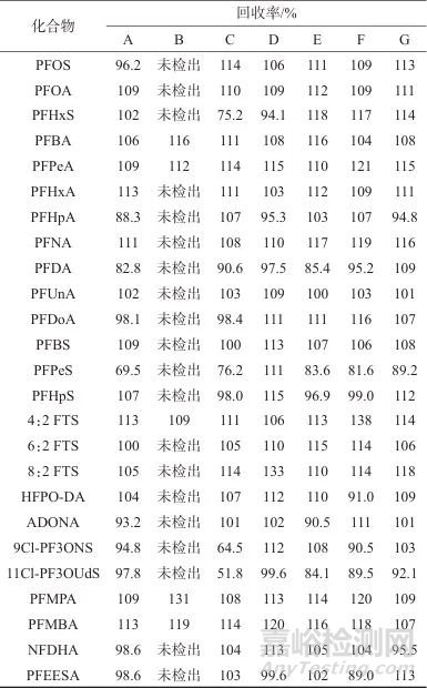 表3 不同材質(zhì)濾膜時25種PFASs的回收率