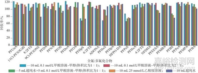 圖2 不同淋洗液時25種PFASs的回收率