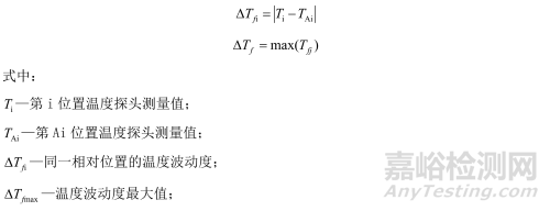 將經(jīng)過同一相同位置前后兩支溫度探頭的結果數(shù)據(jù)的差值記為溫度波動度。取左、中右三個位置中溫度波動數(shù)值最多的作為結果的溫度波動度。