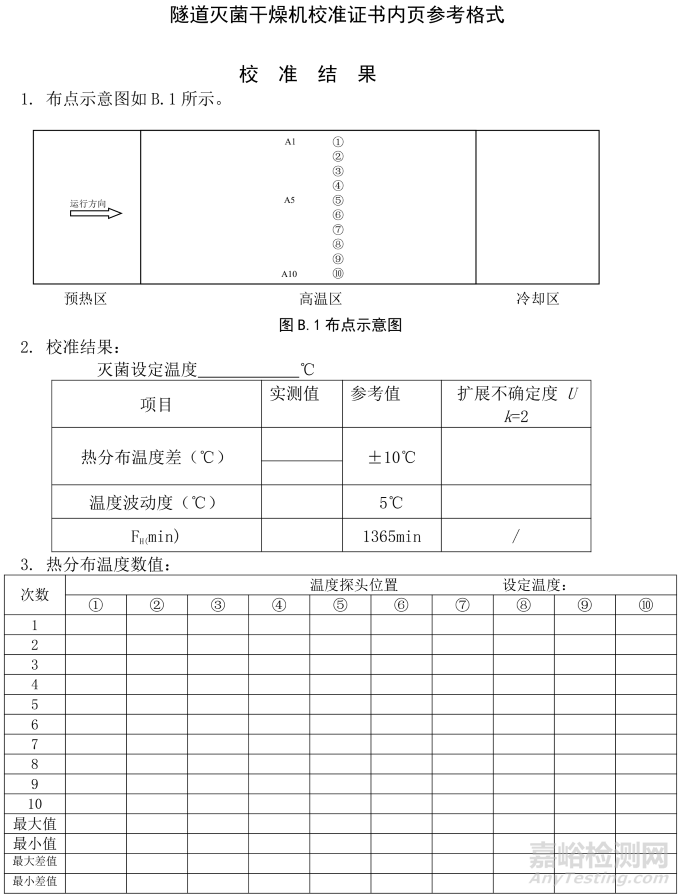 隧道滅菌干燥機校準證書內(nèi)頁參考格式