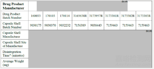FDA進一步查看了數(shù)據(jù),發(fā)現(xiàn)(b)(4)中生產(chǎn)的膠囊批次藥物釋放速度往往更快,而(b)(4)中生產(chǎn)的膠囊批次藥物釋放速度較慢(表10)。這一發(fā)現(xiàn)進一步證實,從圖9中類似的溶出特點和膠囊內容物的微小變異性來看,溶出變異性來自膠囊破裂時間的變異性,因為這些HPMC膠囊在不同生產(chǎn)地點之間不均勻。