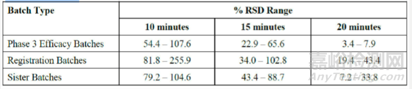 關鍵臨床研究中使用的超過4批次膠囊表現(xiàn)出不同的溶出特點,其中少數(shù)明顯不同。FDA審評員向企業(yè)醫(yī)學官傳達了高溶出變異性問題并詢問了是否會由于批次內和批次間變異性高而觀察到顯著不同有效性和安全性特征,以及是否可以進行任何基于批次的子組分析。