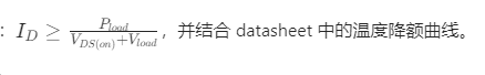 需大于實際工作電流,同時考慮溫升影響(環(huán)境溫度升高時,ID 降額使用)。