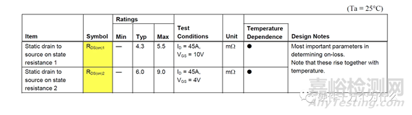 因為在固定的VGS電壓和環(huán)境條件下,功率MOSFET的RDS(ON)是固定的,因此這條斜線的斜率為1/R(DS(ON))。
