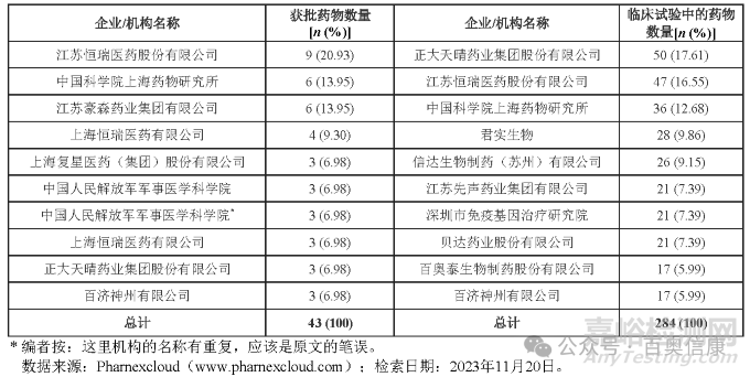表1. 中國獲批及臨床創(chuàng)新藥數(shù)量排名前十的企業(yè)與機(jī)構(gòu)