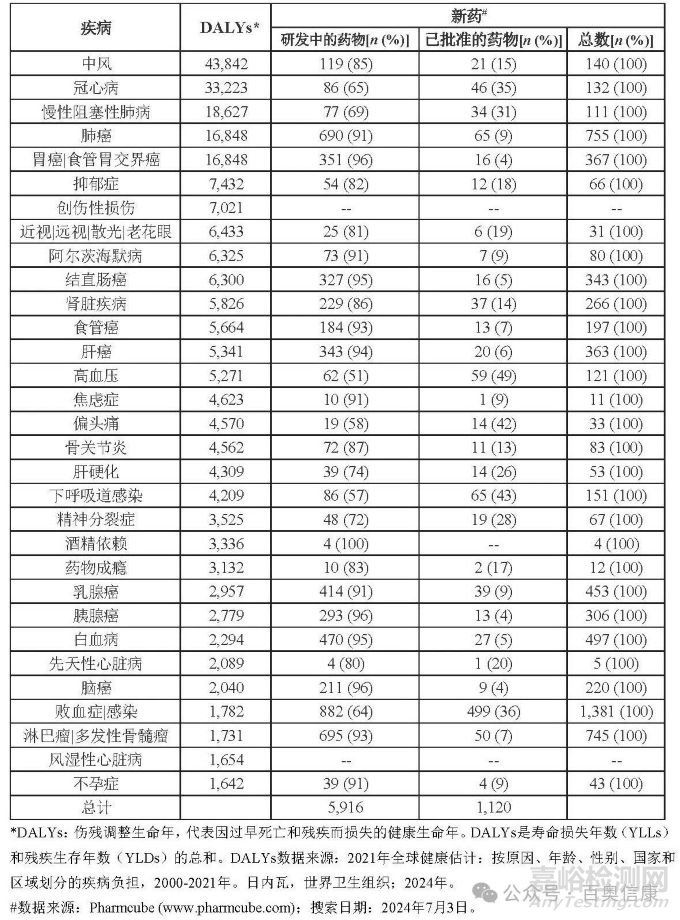 表 2. 中國前30大疾病負(fù)擔(dān)和新藥研發(fā)管線