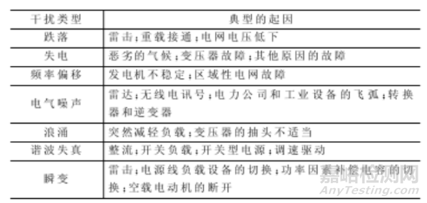 表1 電源干擾的類型