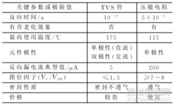 表5 TVS管與壓敏電阻器的比較