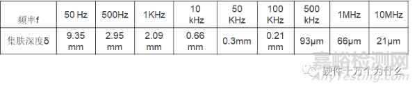 銅導(dǎo)體的集膚深度:(20℃)