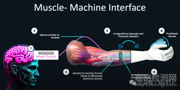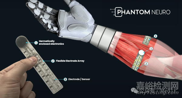 Phantom X的微型傳感器是一種非常薄的電極,只需貼到患者手臂上,就能捕捉到手臂神經(jīng)信號(hào),將手臂上運(yùn)動(dòng)神經(jīng)信號(hào)通過(guò)AI處理后,無(wú)線傳輸?shù)椒律稚?,從而時(shí)間控制放仿生手運(yùn)動(dòng)。