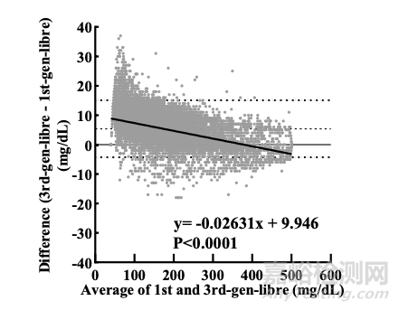 我們都知道持續(xù)血糖監(jiān)測(cè)(Continuous glucose monitoring,CGM)的算法很重要,但這屬于核心機(jī)密,所以一般很難通過正規(guī)渠道獲得相關(guān)信息。在去年的Natue:Scientific Reports上,日本近畿大學(xué)醫(yī)學(xué)部(Faculty of Medicine,Kindai University)的Naru Babaya(馬場(chǎng)谷 成)教授等研究者就使用了13名患者的19,819個(gè)配對(duì)且同時(shí)測(cè)量的CGM值,比較了使用相同傳感器但是采用不同內(nèi)部算法的一代和三代CGM系統(tǒng),發(fā)現(xiàn)與一代相比,三代CGM系統(tǒng)的平均值更高(p<0.0001),且血糖低于范圍的時(shí)間TBR(Time Below Range)顯著更短(p<0.0001),兩代CGM系統(tǒng)測(cè)量值間存在著顯著的相關(guān)性。