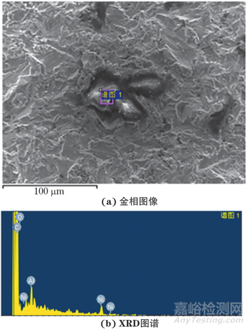 經(jīng)X射線衍射檢測后發(fā)現(xiàn)黑點處成分主要為Al2O3,即有部分砂粒覆蓋于基體表面,如圖3和圖4所示。