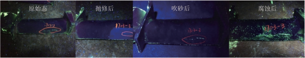 圖12 預(yù)腐蝕前后的葉片熒光滲透檢測結(jié)果對比
