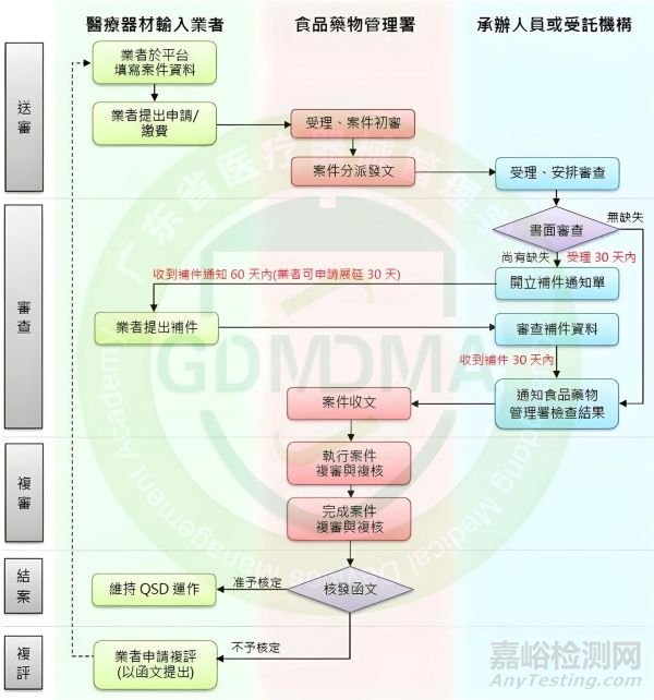 ◆ QSD符合性申請:準備質量體系文件(QSD)→遞交QSD審查申請及繳費→TFDA審查及補正通知→資料補正(2個月內)→TFDA批準簽發(fā)QSD證書;如涉及極高風險產品需啟動現(xiàn)場審核,請參考“5、現(xiàn)場審核要求及注意事項”。