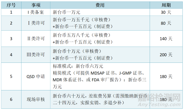 注:如涉及臨床試驗資料審核,費用另計;其中臨床試驗方案-新臺幣五萬元,臨床試驗報告-新臺幣五萬元,臨床試驗文件技術性評估-新臺幣兩萬元,臨床試驗變更審查-新臺幣五千元,海外臨床試驗機構現(xiàn)場核查-新臺幣六十五萬元。