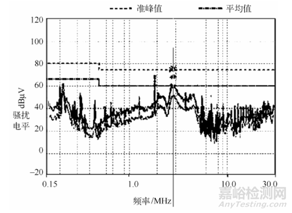 按以上原理分析, 只要去掉共模電感前端的Y 電容CY1 , 就可以使本案例中的產(chǎn)品傳導(dǎo)騷擾測(cè)試通過, 并保持有一定的裕量?