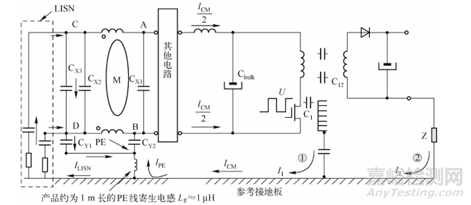 PE線1m長度寄生電感≈1μH,化身共模電壓發(fā)生器