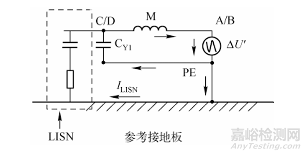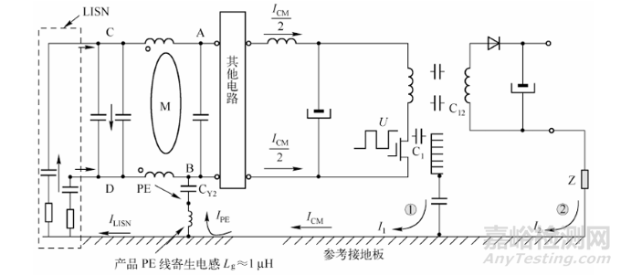 另一路流向LISN, 即圖中的ILISN , 它直接決定著傳導(dǎo)騷擾的測(cè)試結(jié)果 (共模傳導(dǎo)騷擾)