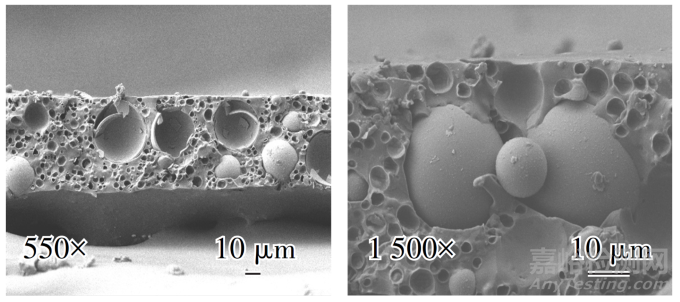 Fig.5 Cross-section micromorphology of the thermochromic reversible coating with hollow glass microspheres